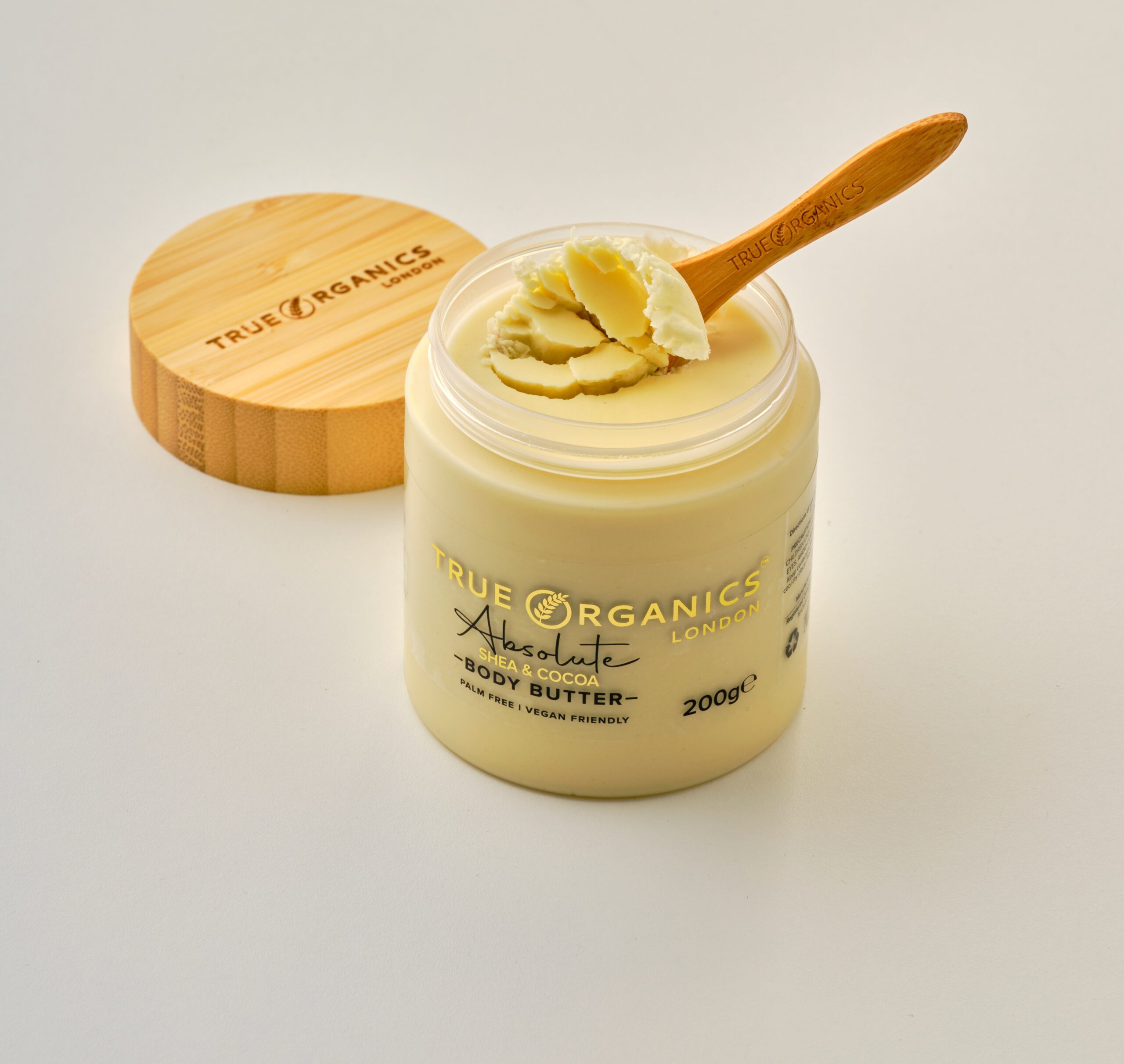 - LUXURIOUSLY NOURISHING SHEA AND COCOA BODY BUTTER – treat your skin to the indulgence of True Organics London Absolute Shea and Cocoa Body Butter. Made from 100% raw organic and unrefined butters sourced from Ghana, this rich Shea body butter deeply hydrates, replenishes, and restores moisture. Ideal for dry, combination, normal, and mature skin, this cocoa butter body butter delivers intense moisture while enhancing skin’s elasticity, leaving it feeling soft, smooth, and deeply nourished